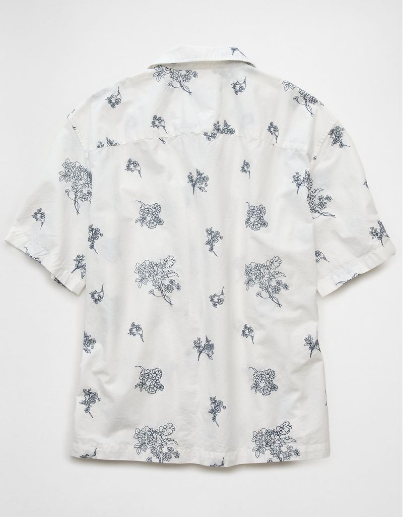 Camisa floral con botones junto a la piscina